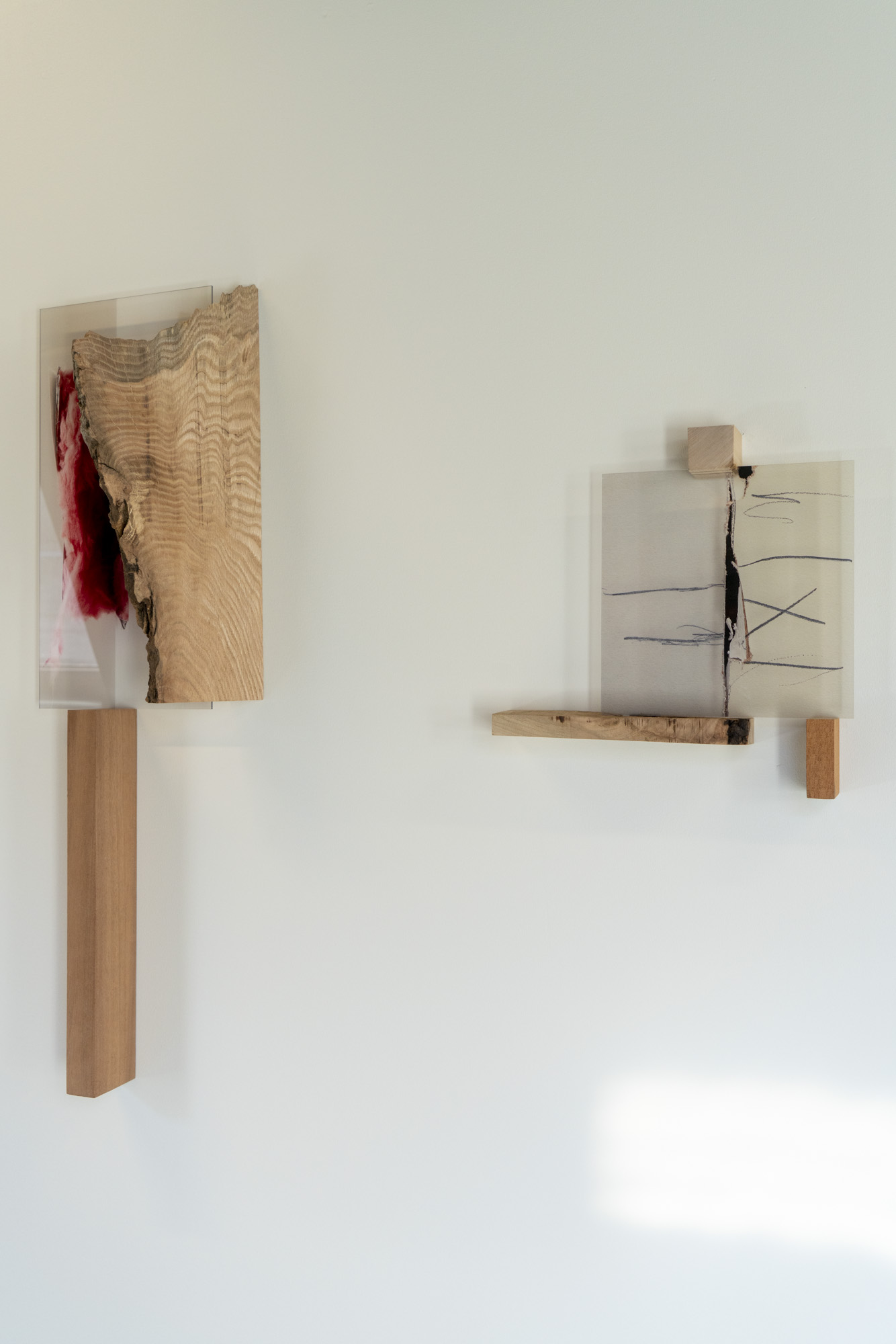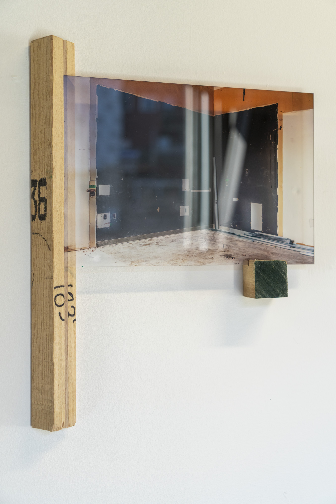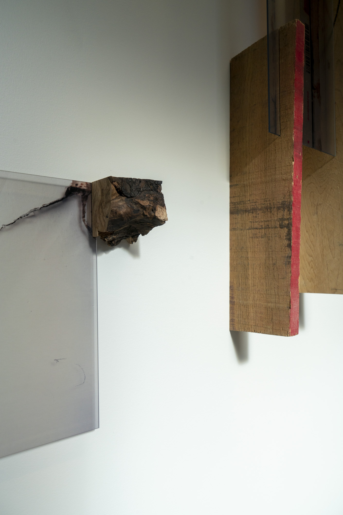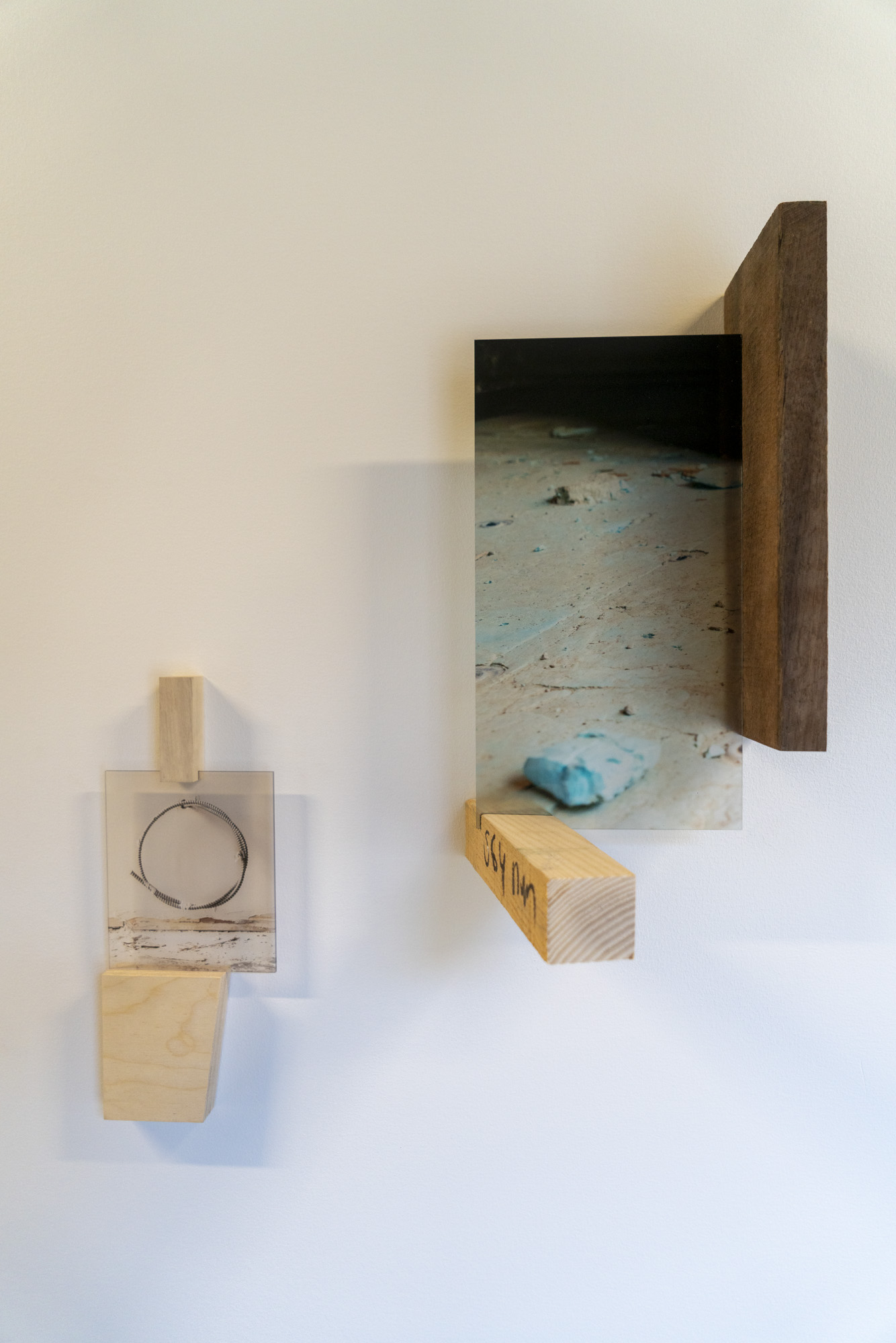 Parmi les œuvres présentées, on trouve des assemblages de photographies et de chutes de bois issues d’un atelier de menuiserie. Les éléments graphiques et sculpturaux s’y répondent, s’y confrontent ou s’y complètent, dans les formes ou les couleurs. Les dispositifs, entièrement démontables, offrent une multitude de possibilités d’assemblages de ces éléments, l’installation étant vouée à être repensée, reconfigurée, réduite ou augmentée.
