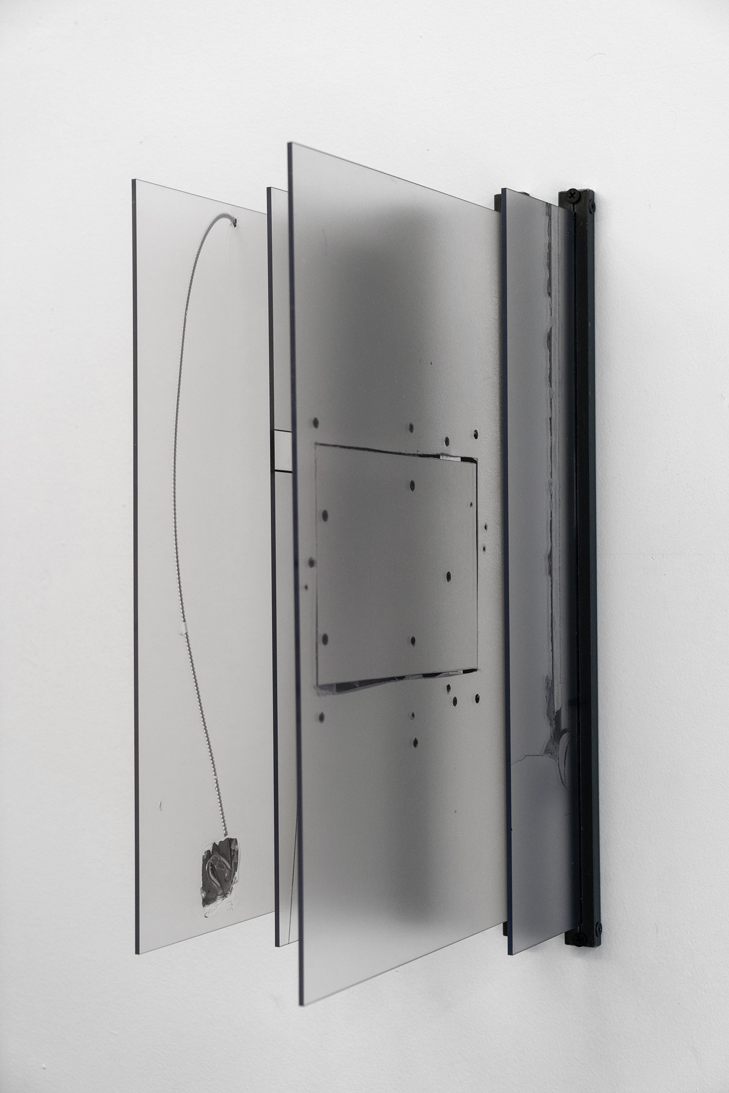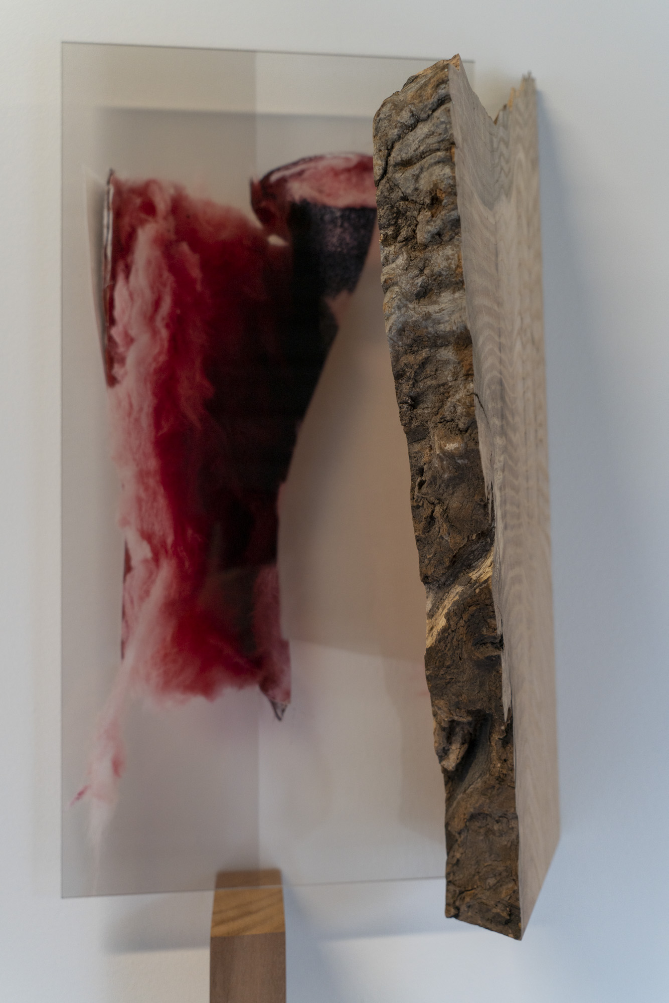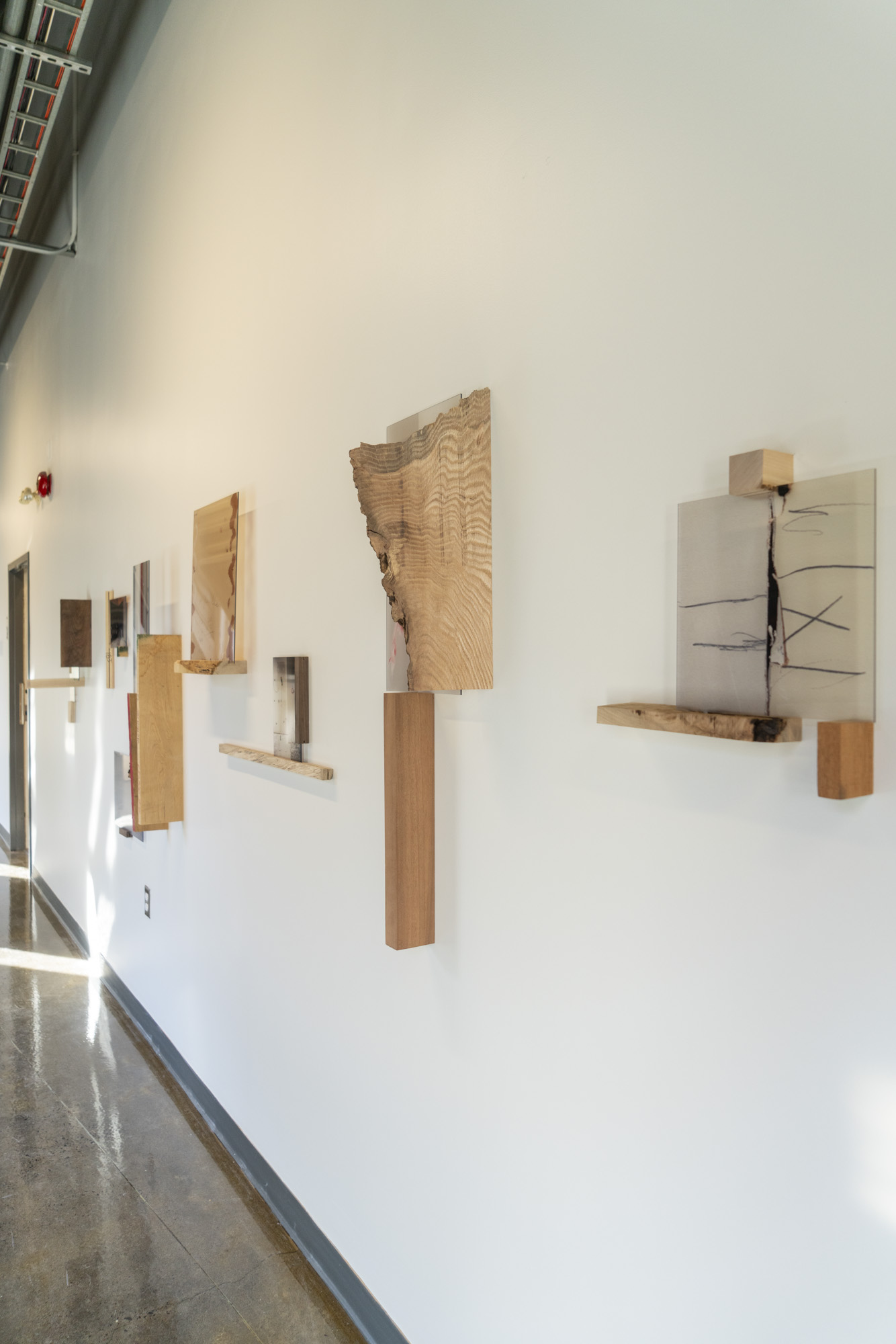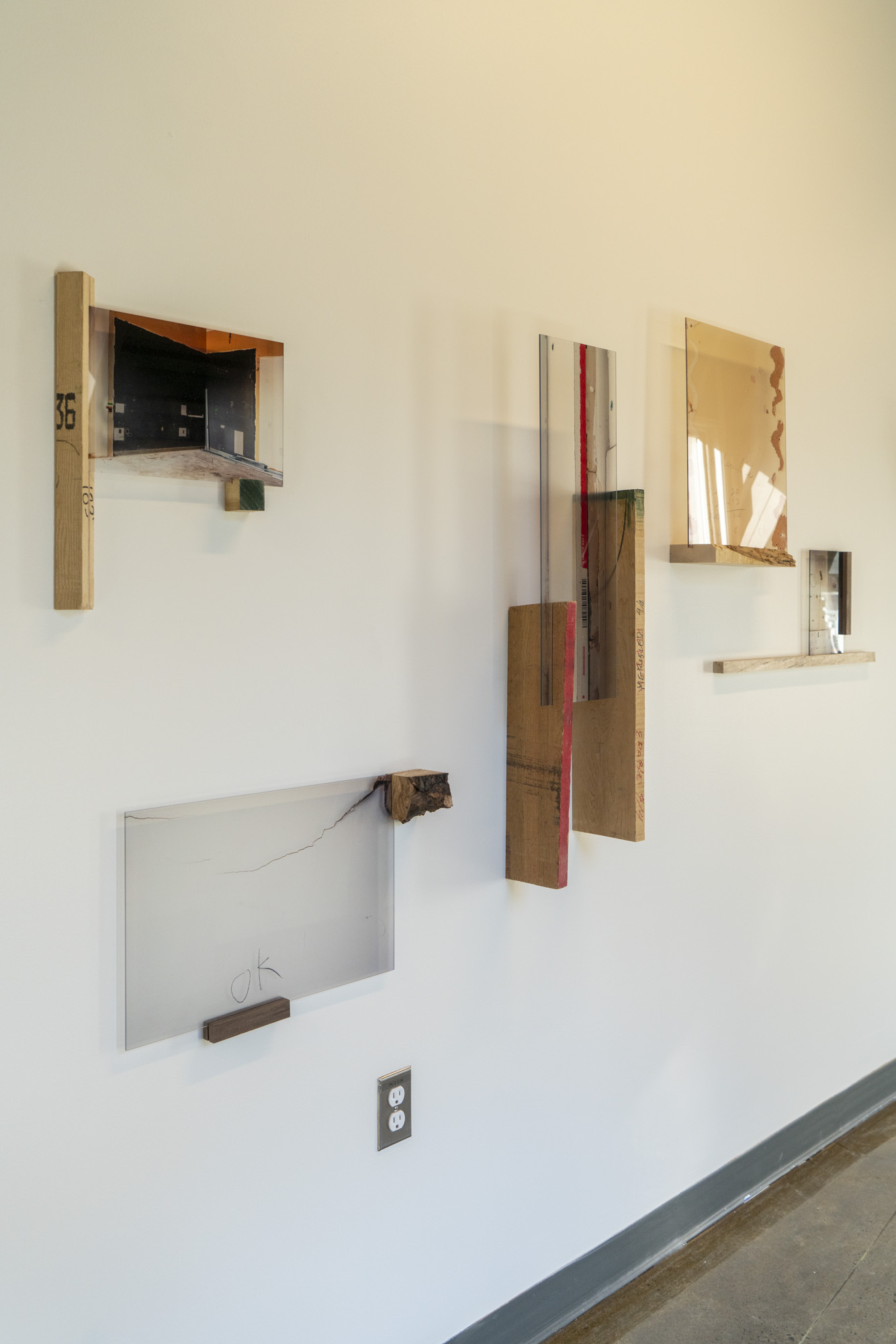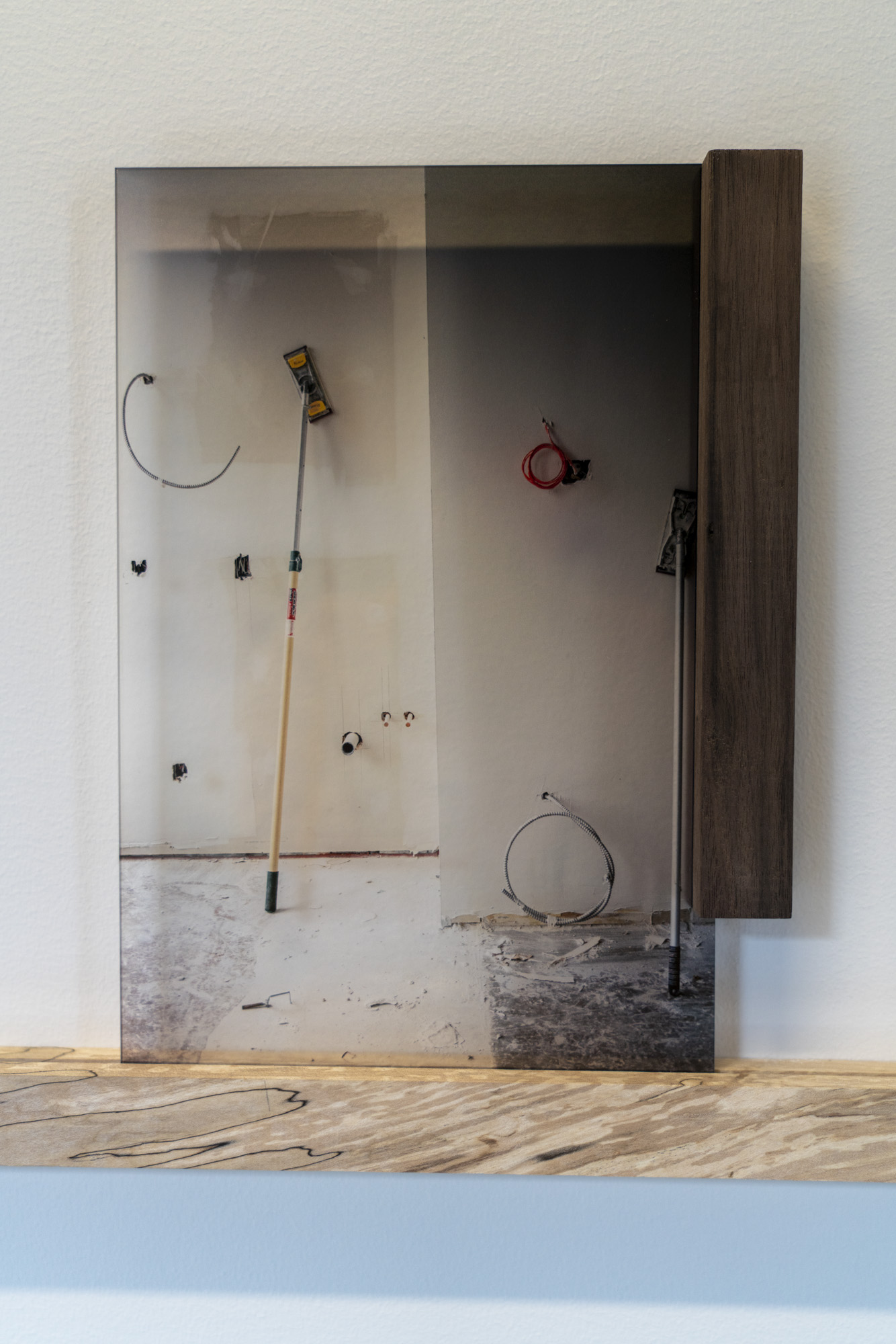 Parmi les œuvres présentées, on trouve des assemblages de photographies et de chutes de bois issues d’un atelier de menuiserie. Les éléments graphiques et sculpturaux s’y répondent, s’y confrontent ou s’y complètent, dans les formes ou les couleurs. Les dispositifs, entièrement démontables, offrent une multitude de possibilités d’assemblages de ces éléments, l’installation étant vouée à être repensée, reconfigurée, réduite ou augmentée.