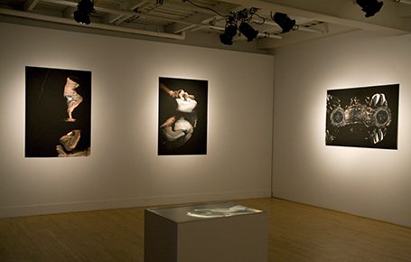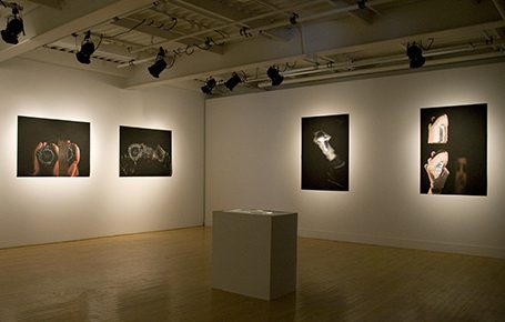 Connu pour sa production sculpturale ludique, Dgino Cantin présente sa première série photographique, réalisée à l’occasion d’une résidence de création au centre VU. À l’aide d’un numériseur, l’artiste capte les manipulations de ses sculptures portatives tenues entre ses mains gantées. Les déplacements, translations et rotations de ces objets hétéroclites et malléables génèrent des formes qui semblent liquéfiées par le balayage de l’appareil électronique. Dgino Cantin façonne ainsi un univers poétique personnel, dans lequel l’autoportrait s’introduit parfois discrètement.