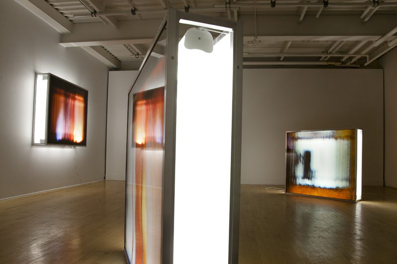 Récurrent dans le travail de Laura Dutton, le motif de la fenêtre, par le traitement plastique que lui impose l’artiste, peut être envisagé comme une métaphore de la vie intérieure. La fenêtre suggère en effet la contemplation d’une réalité extérieure à soi. L’ouverture qu’elle évoque vers cette réalité suggère l’interrelation simultanée entre un sujet et un objet, interrelation rendue possible par la médiation de la lumière. Mais justement, dans le cas des boîtes lumineuses de Dutton, la lumière, loin de n’être qu’un véhicule, se substitue à l’objet pour l’incarner. Fin en soi de la contemplation que rendent possible les œuvres de l’artiste, elle s’offre au regardeur pour elle-même en se drapant de la plasticité des images qui la diffusent.