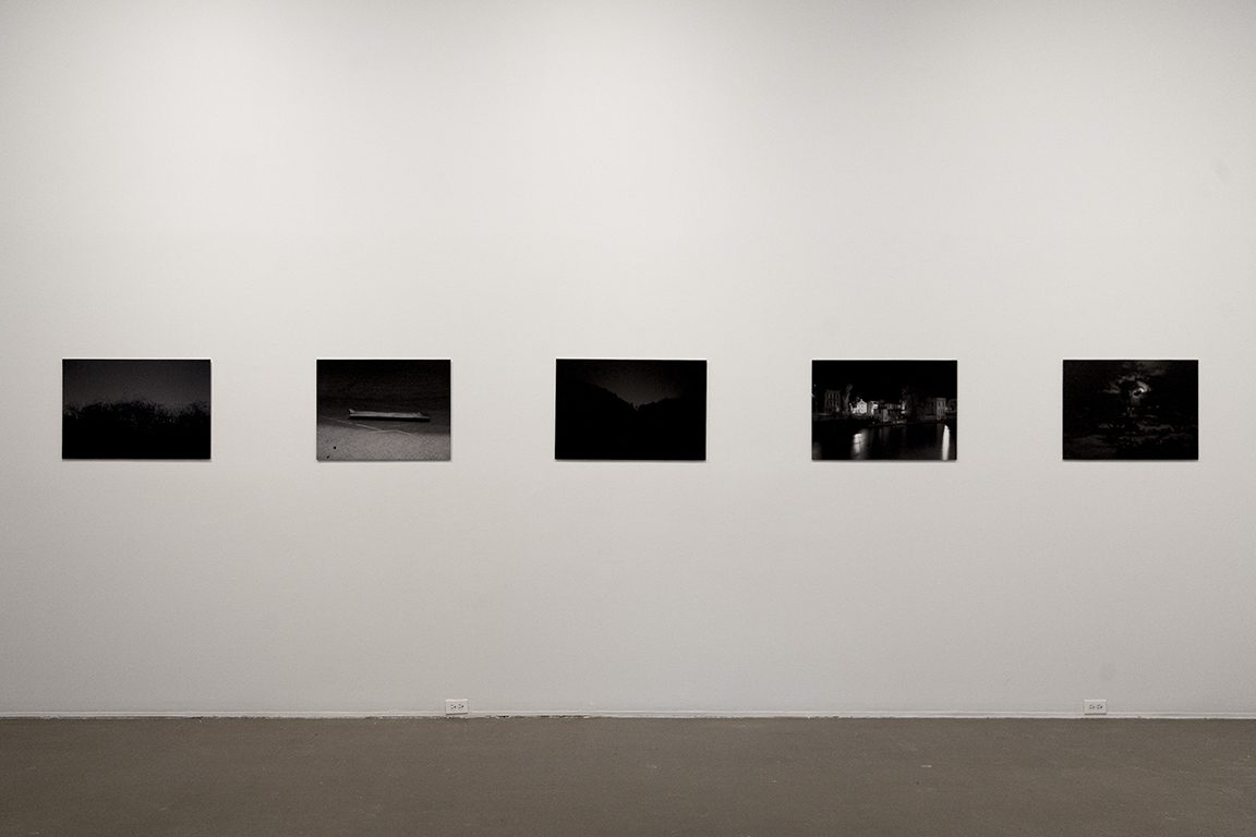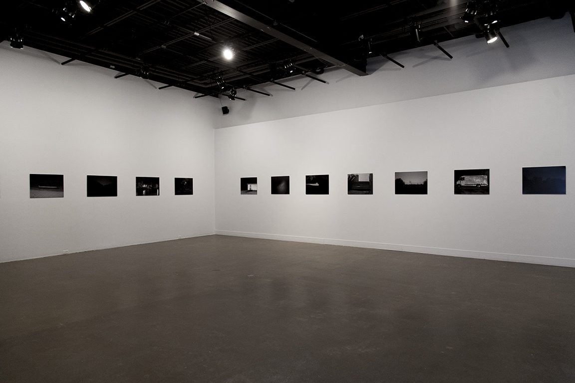 Il y a des mensonges plus graves que celui de faire des images qui ne sont pas le reflet exact de la réalité. Photographier la nuit, c’est capter des espaces allongés par le temps. Les images de Vincent Lafrance ne peuvent ainsi appartenir qu’à la photographie : elles résultent de la patience de la caméra à percevoir les zones de clarté qui dessinent des formes dans la noirceur. Les paysages se sont vus transformés au fil de l’accumulation de couches d’informations prélevées par l’exposition longue; tant le mouvement que l’immobilité y sont enregistrés, donnant presque une substance au temps qui passe. Malgré leur timidité, les lumières de la nuit émanent juste assez pour faire danser les ombres des arbres et se mêler au courant de l’eau sur les rivières.