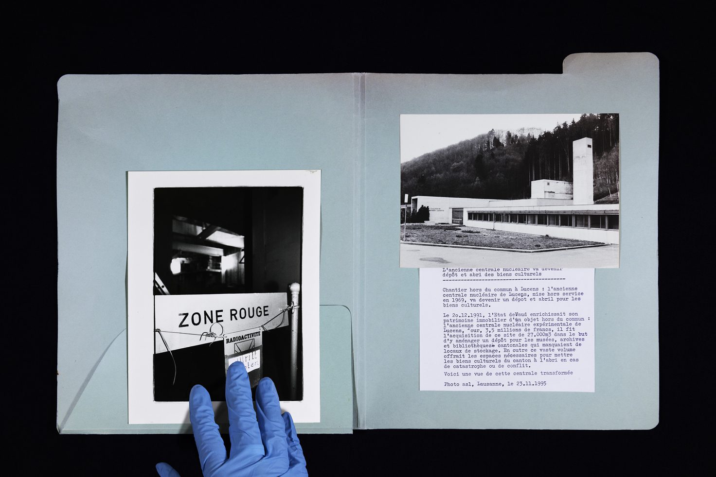Réalisé à partir documents d’archives déclassifiées, de recherches scientifiques, d’observations sur le terrain, d’entrevues avec des chercheurs et d’une documentation photographique, vidéographique et sonore, Le silence des murs. Unquiet Space explore un bâtiment insolite situé en Suisse : une ancienne centrale nucléaire convertie en entrepôt accueillant les trésors culturels des plus grandes institutions muséales. Dissimulée sous une colline verdoyante, la caverne du réacteur a été définitivement scellée avec du béton à la suite d’un important accident radioactif en 1969. Après avoir été dénucléarisée, les installations modernistes de cette ancienne centrale transformée en dépôt de biens culturels nous convoquent aujourd’hui à un agencement hétérogène d’époques et de temporalités. Y sont abrités des archives, pièces de taxidermie, œuvres d’art, vestiges archéologiques, ethnologiques et géologiques vaudois, bien que certaines pièces proviennent d’origines extérieures à la Suisse.