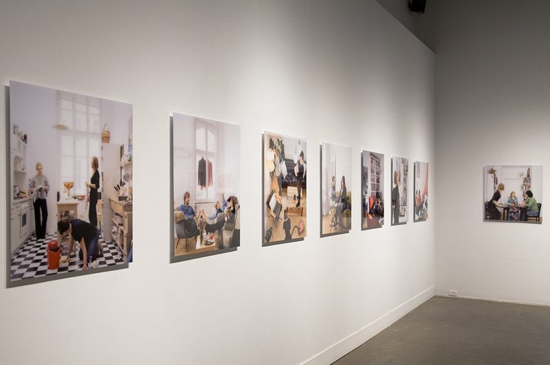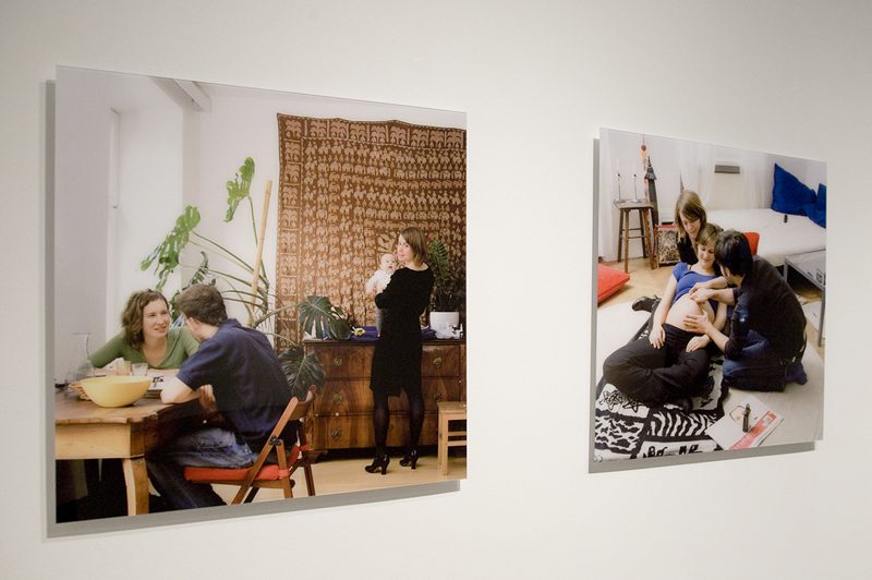 La série photographique Triples de Kim Waldron prend pour cadre l’univers domestique de jeunes couples de la classe moyenne viennoise. Montrant des intérieurs au design générique où évoluent conjoints et concubins, la photographe crée des scènes de ménage à trois au sein desquelles son interaction avec ses modèles vise à perturber et à questionner la dynamique relationnelle du couple hétérosexuel. Mais encore, l’intrusion de l’artiste dans le champ photographique engendre un basculement du statut de la représentation, qui vacille dès lors entre le documentaire et la mise en scène, entre la scène de genre et l’autoportrait.